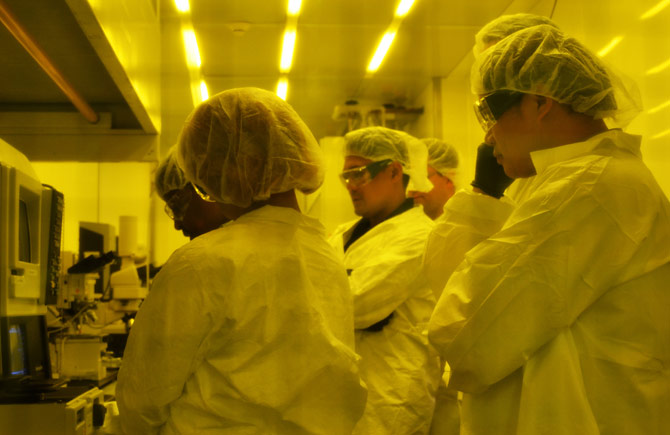 This year’s contingent of 14 workers — ranging in age from early 30s to mid-50s with backgrounds spanning electronics recycling to healthcare and data processing to customer service — got its first hands-on experience at the nanotechnology center in June during a daylong boot camp on lab fundamentals. The group also toured the research and fabrication facilities at Stanley Hall before undergoing a comprehensive safety orientation.