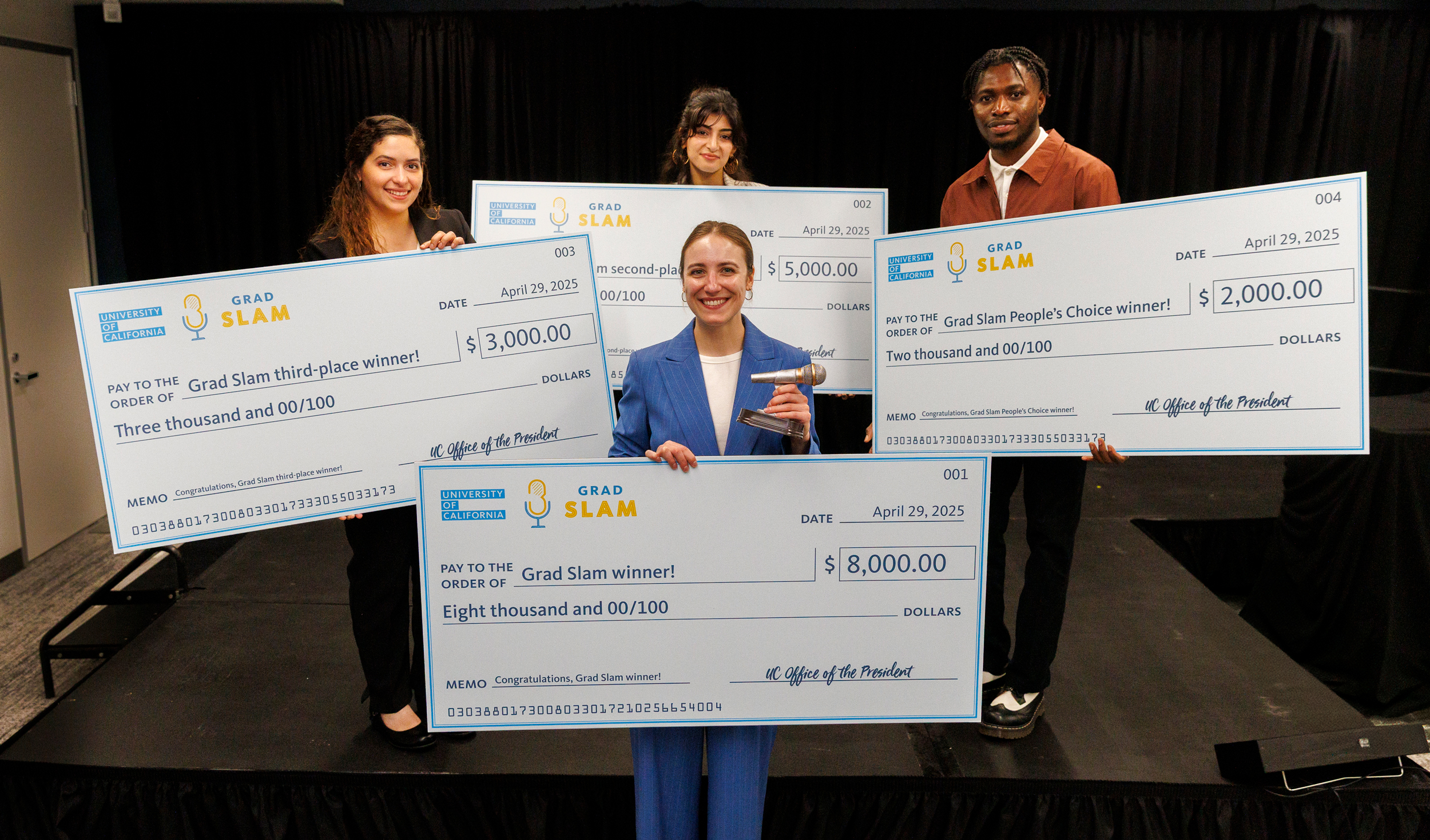 The competition may have coalesced around 10 individuals, but ultimately Grad Slam is about the groundbreaking research happening across the UC system and the more than 63,000 graduate students who power it, giving the public a window onto how that work affects our lives and why it matters.