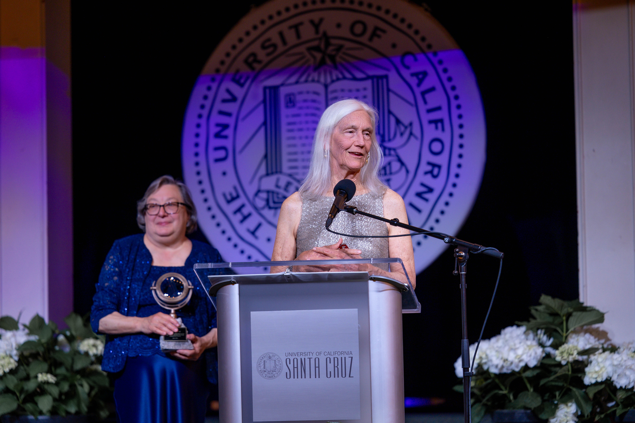 In announcing the award, Drake lauded Packard for her longstanding commitment to UC Santa Cruz and the UC system, noting that her “transformative philanthropy” has allowed the University to turn scientific research into practical environmental solutions, while inspiring generations of students to study — and protect — the global ocean.