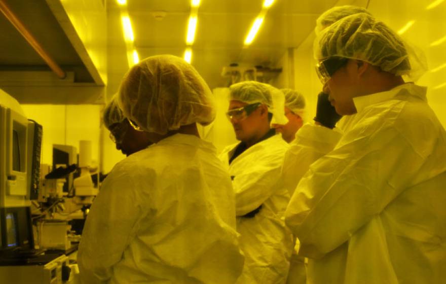 Laid-off workers are getting hands-on training in microfabrication at Berkeley’s Biomolecular Nanotechnology Center through a collaborative technical-education initiative with Oakland’s Laney College.